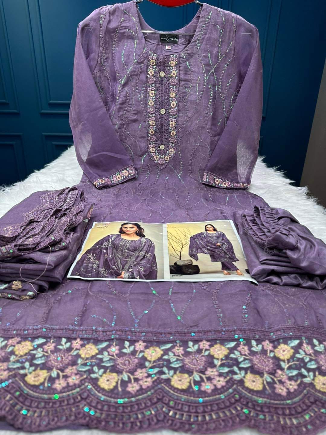 ওড়না কাটওয়ার্ক করা সিকোয়েন্স এমব্রয়ডারি কাজ পাঁচ হাত