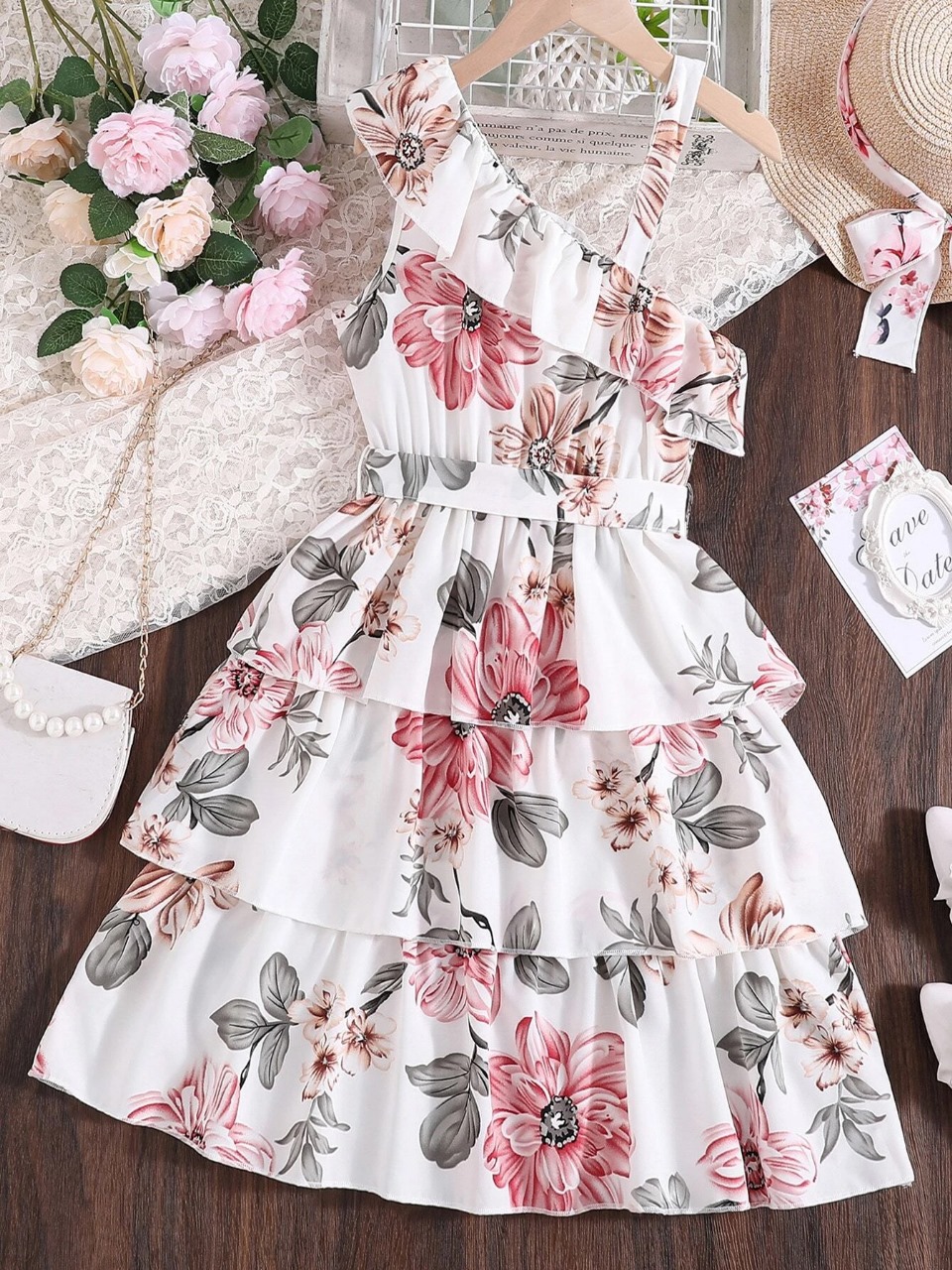 Flower Gown Elegant Floral Fit Dress for Girls with Belt